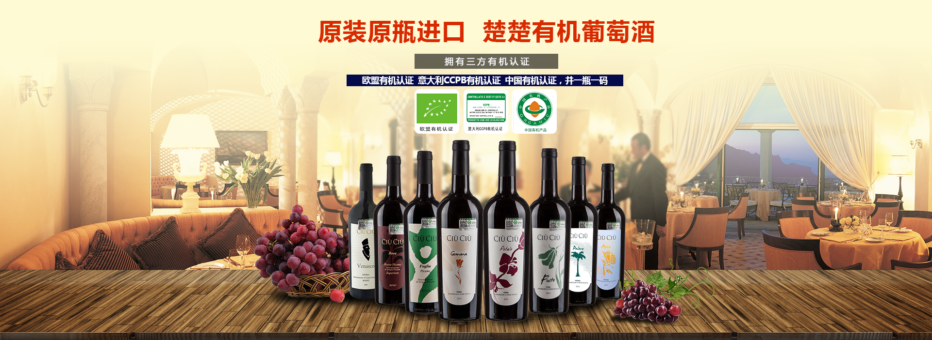 根據不同進貨額度,總部每年給予返利和返點支持,銷售越高,獲利越多2015年11月14日,意大利CIU'CIU'有機葡萄酒品鑒會暨重慶市宸惠(酒業)商貿有限公司招商說明會在重慶維景大酒店成功舉辦!在此宸惠酒業全體員工感謝自意大利遠道而來的CIU’CIU’(楚楚)有機酒莊莊主及工作人員親臨現場;感謝重慶MBA葡萄酒協會會長(法國波爾多騎士、法國波爾多盲品挑戰賽中國站冠軍、WEST高級品酒師)的專業品鑒與點評;感謝廣東商會、四川商會...